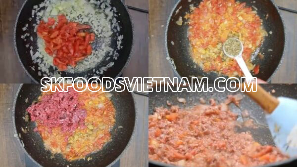 Các bước chế biến món bò băm sốt cà chua chi tiết như sau, bạn chỉ cần thực hiện theo những bước này là sẽ có ngay một món ăn thơm ngon nóng hổi: